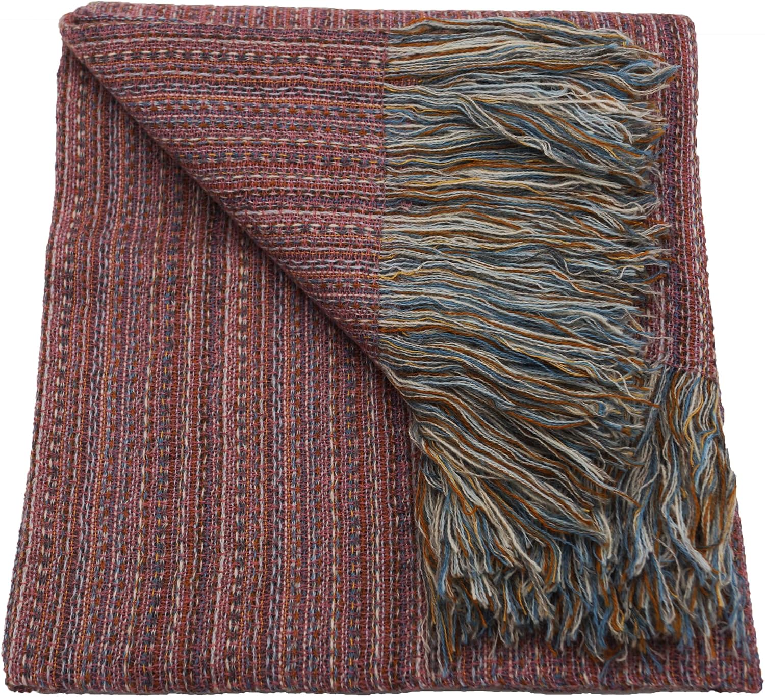 Alpaca and Wool Deckchair Throw Blanket, Dark Pink Accent