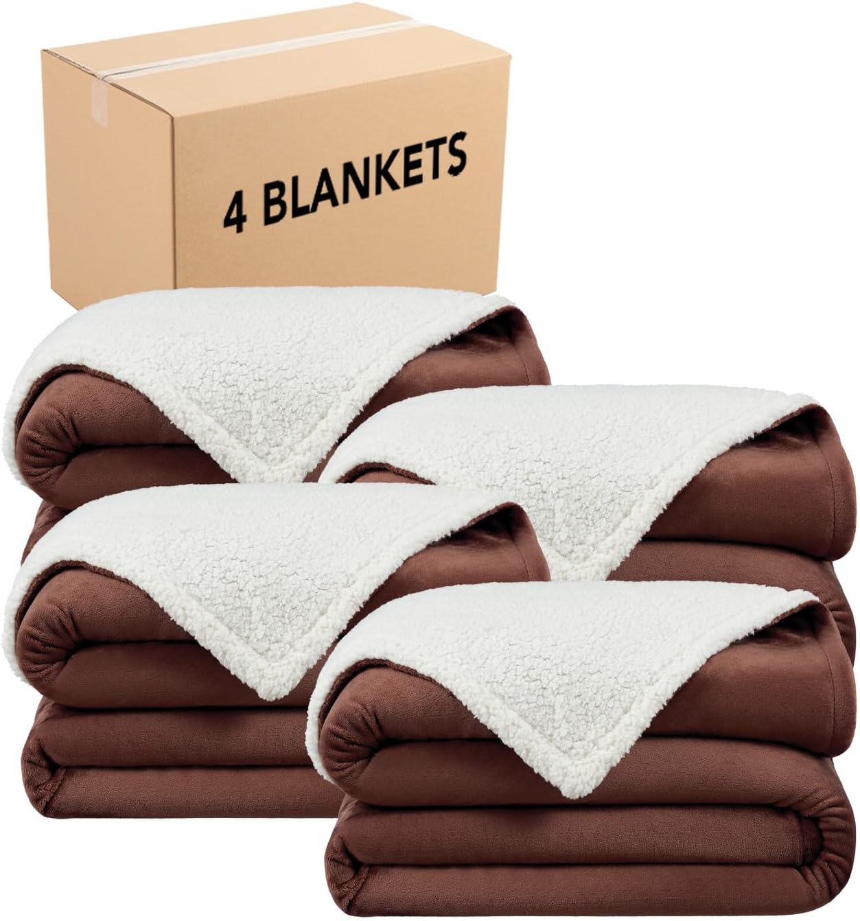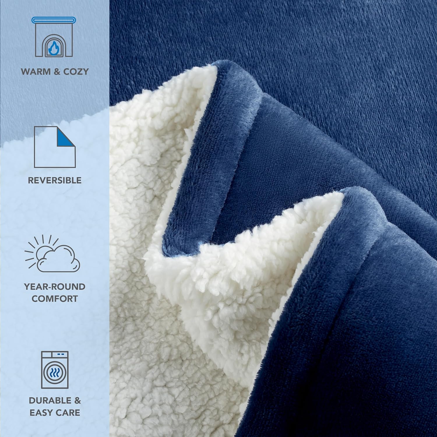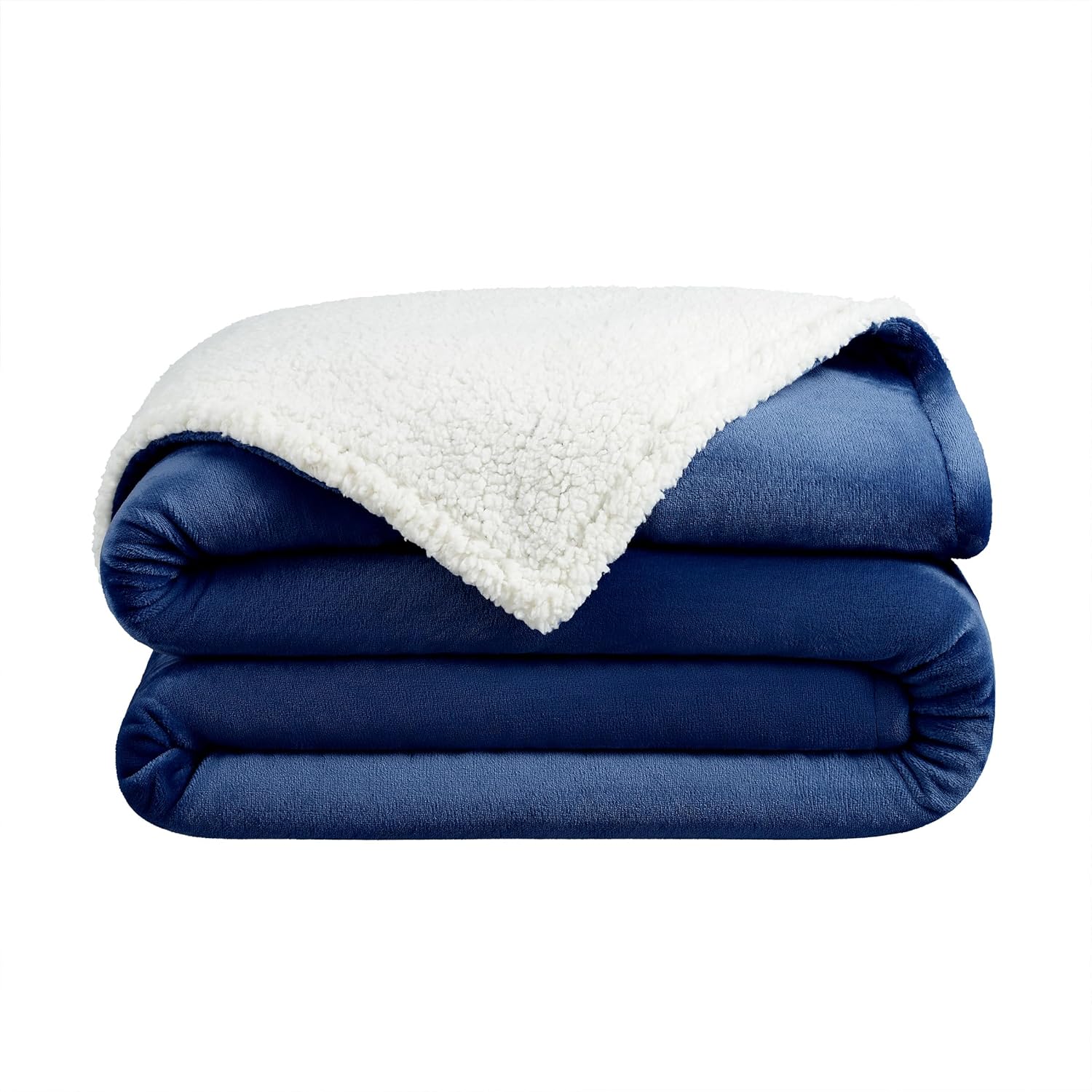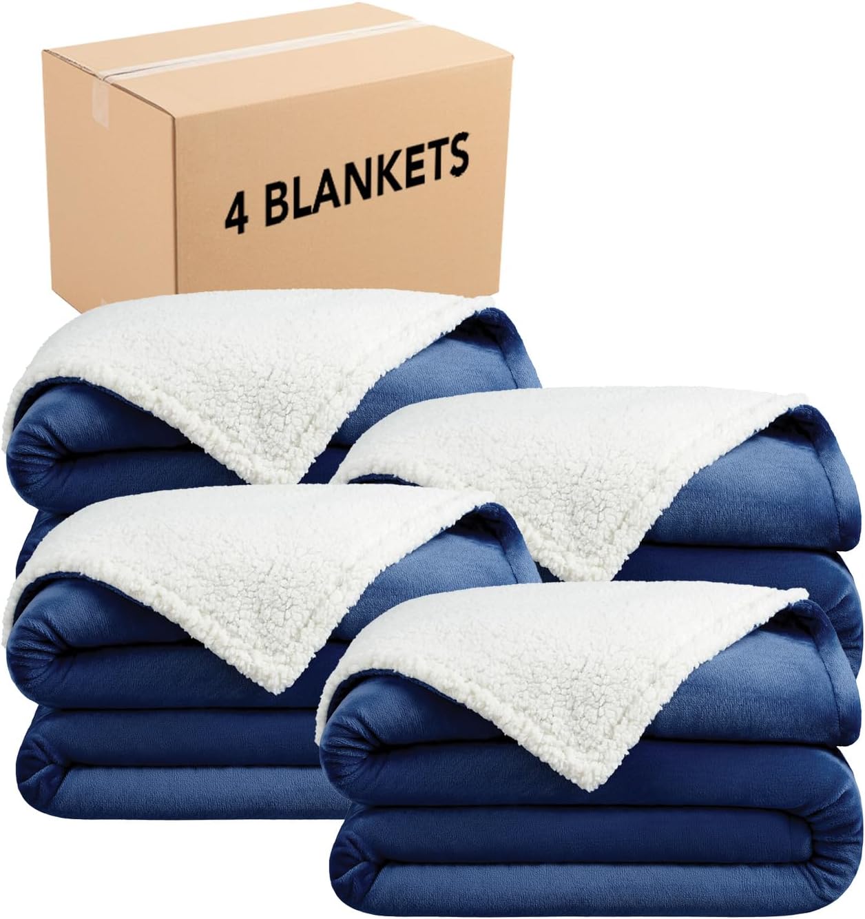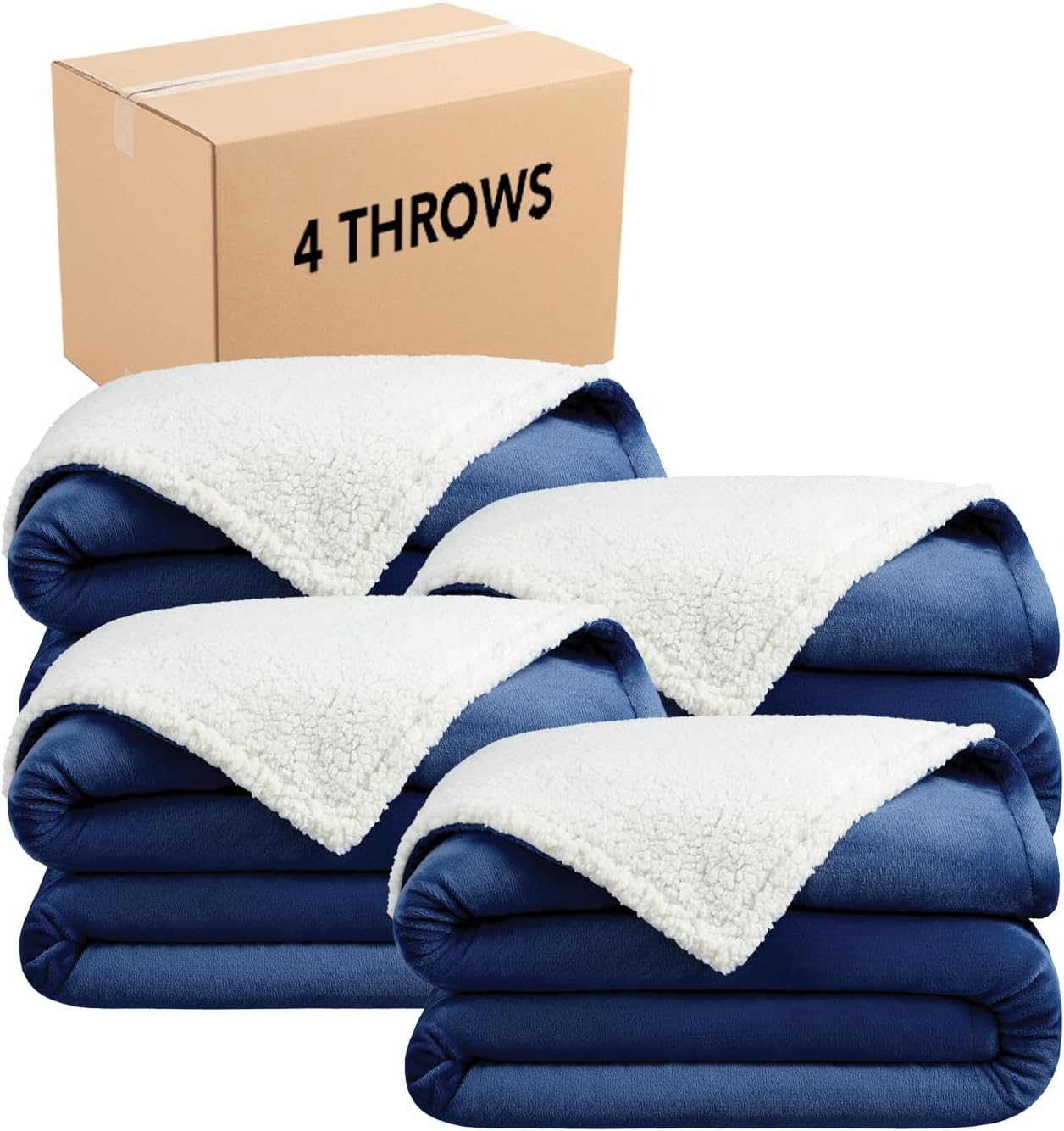 Arkwright Sherpa Fleece Throw Blanket – Case of 4 – Plush Fluffy Warm Reversible Soft Sherpa Throw Blanket for Home, Couch, Sofa, Bed, Camping and Travel, 90×90 in, Queen, Navy
