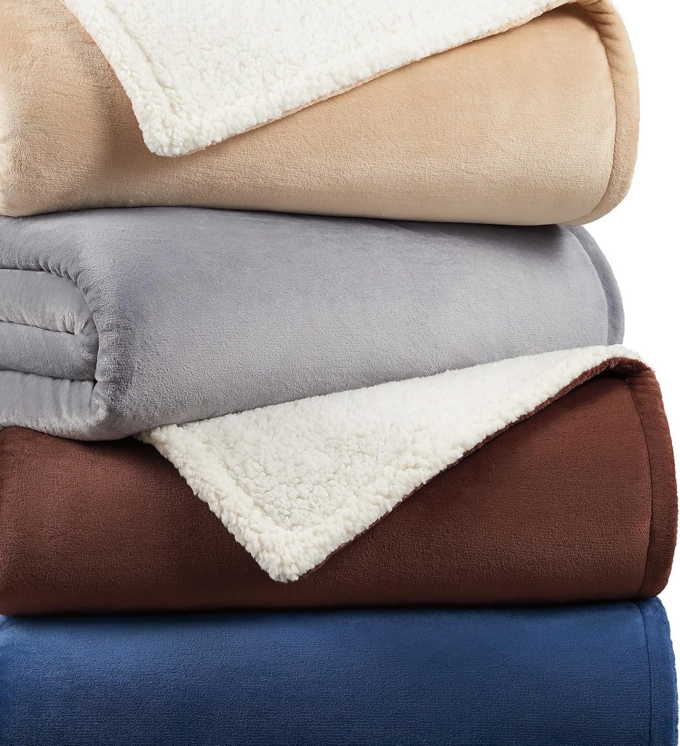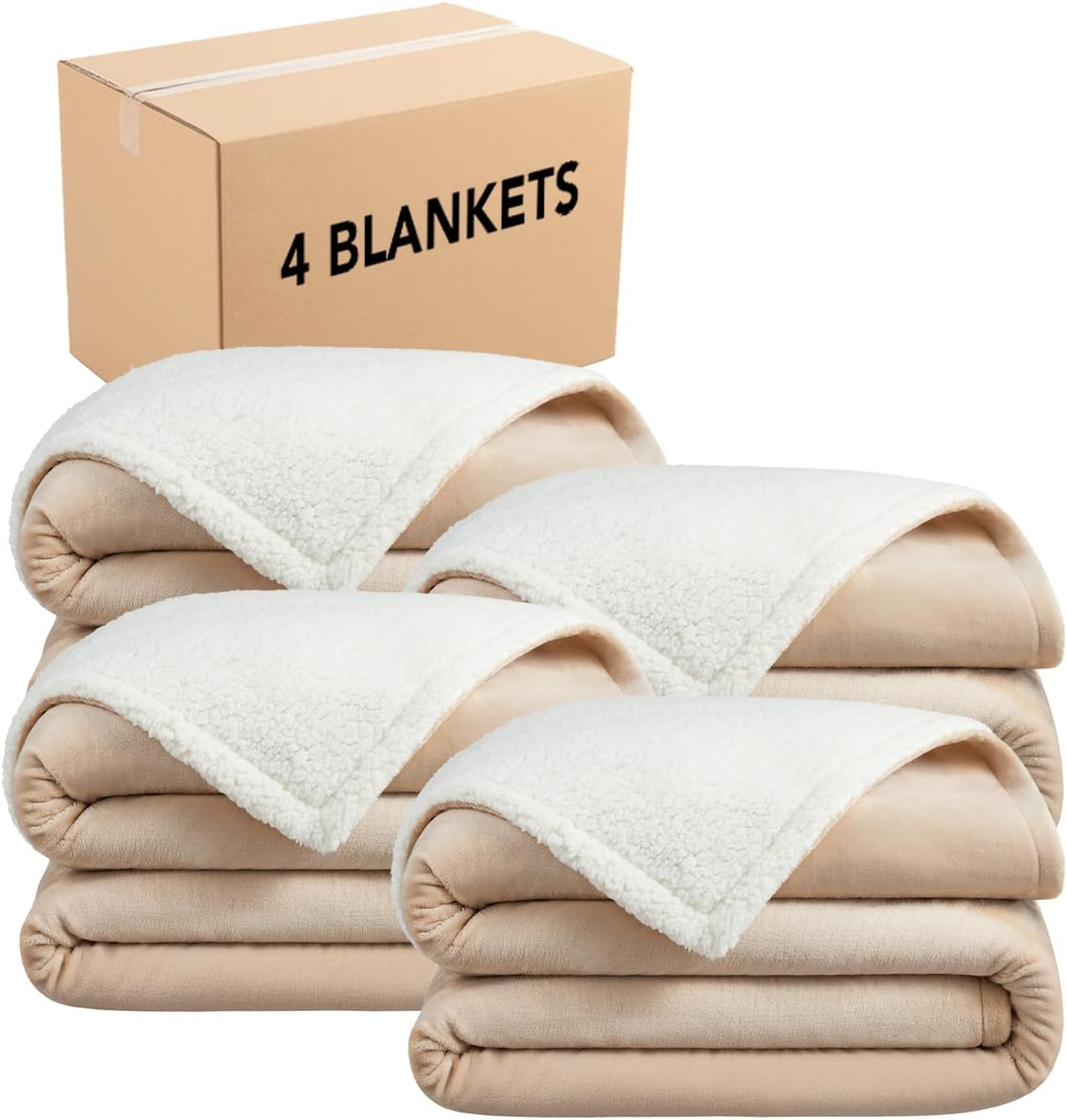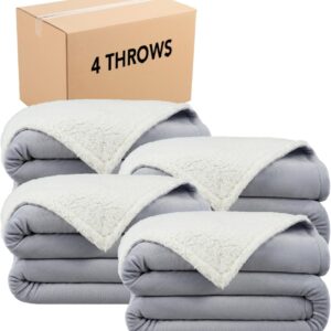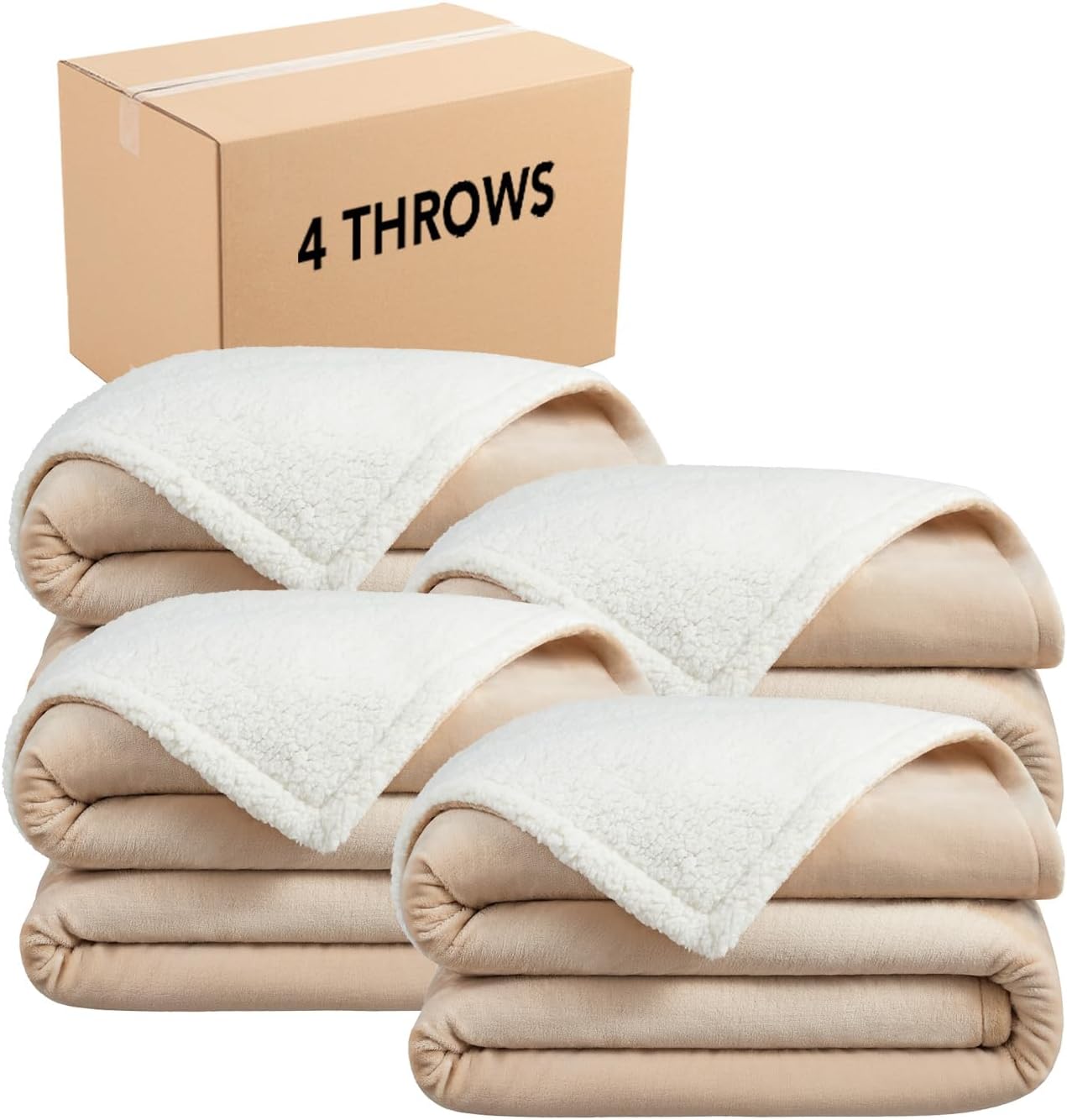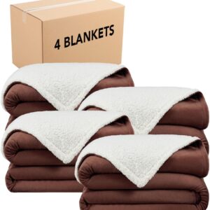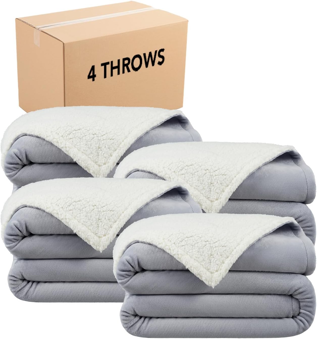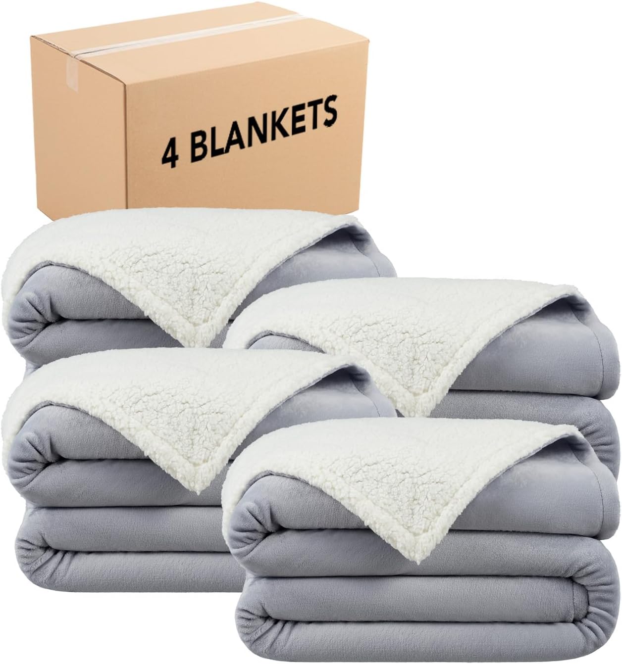Arkwright Sherpa Fleece Throw Blanket – Case of 4 – Plush Fluffy Warm Reversible Soft Sherpa Throw Blanket for Home, Couch, Sofa, Bed, Camping and Travel, 90×90 in, Queen, Navy