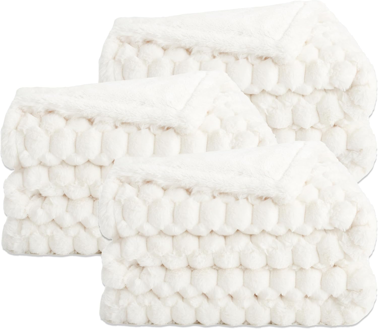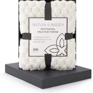 Aston & Arden Faux Fur Blanket Set of 3 50×70 Cottontail Ivory i##e##s: Ultra Soft ^^ Luxury ^^ Plush ^^ Fluffy ^^ Real Furry Texture ^^ Rabbit Tail ^^ Decorative ^^ Giftable Box ^^ Throw ^^ Bed :i##e##s