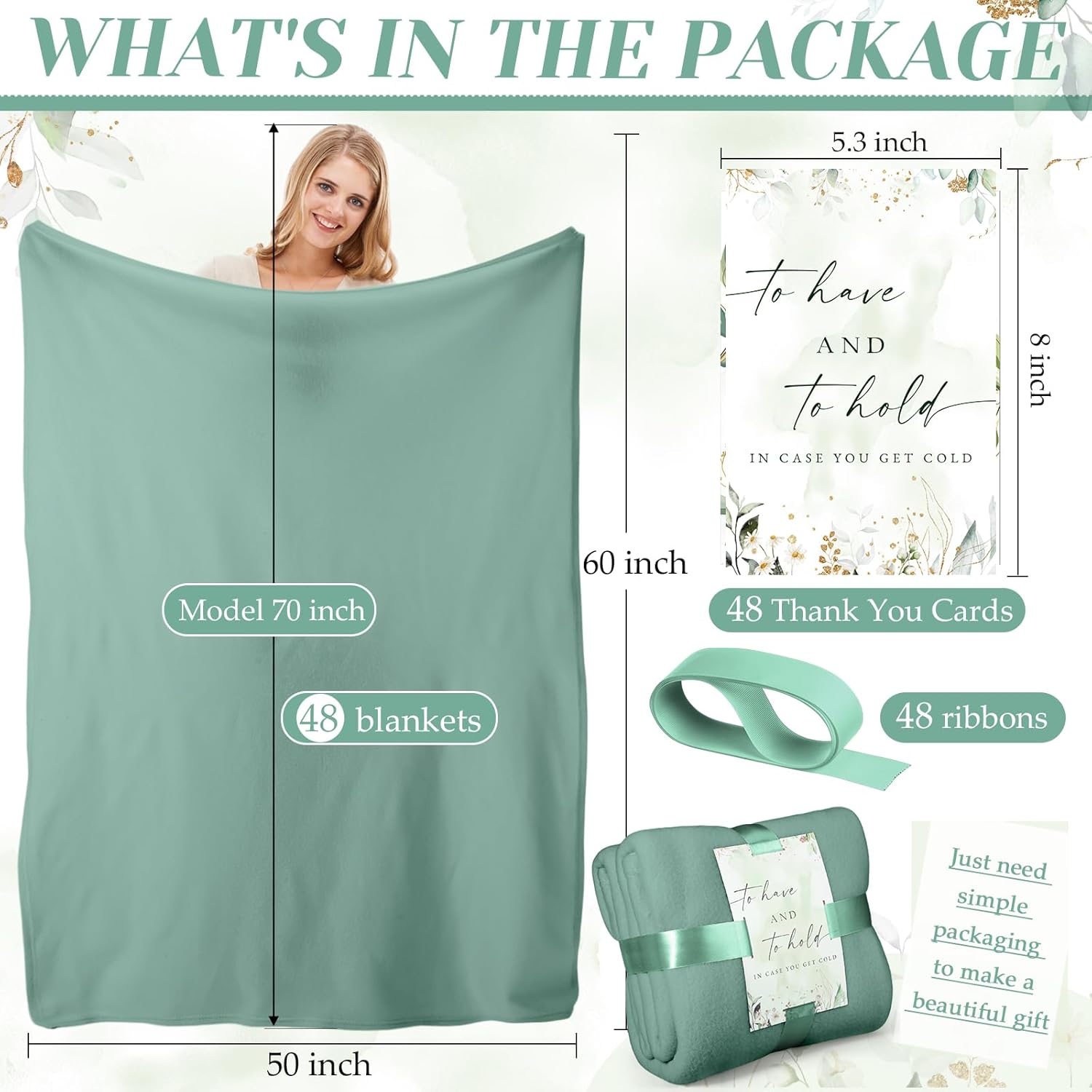 - Package Includes: you will receive 48 pieces of lake blue fleece blankets; The size is 50 x 60 inches, each fleece throw blanket comes with 1 ribbon and 1 thank you card, which can be supplied as a gift for you to give on any occasion, express your gratitude through these universal thank you cards; Ideal for your wedding, baby shower, graduation, bridal shower, birthday, engagement, anniversary, party