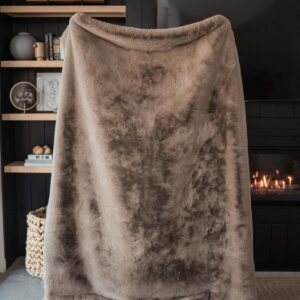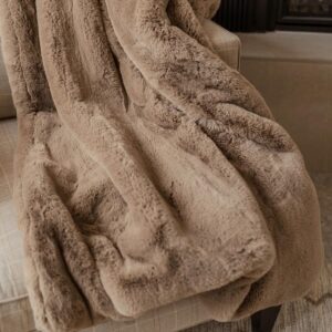 Cozy Earth Cuddle Blanket – Faux Fur Ultra-Soft Luxury Throw Blanket – Thick & Cozy Oversized Design for Lounging or Sharing – Machine Washable – Oversize Throw 80″ x 60″ Walnut