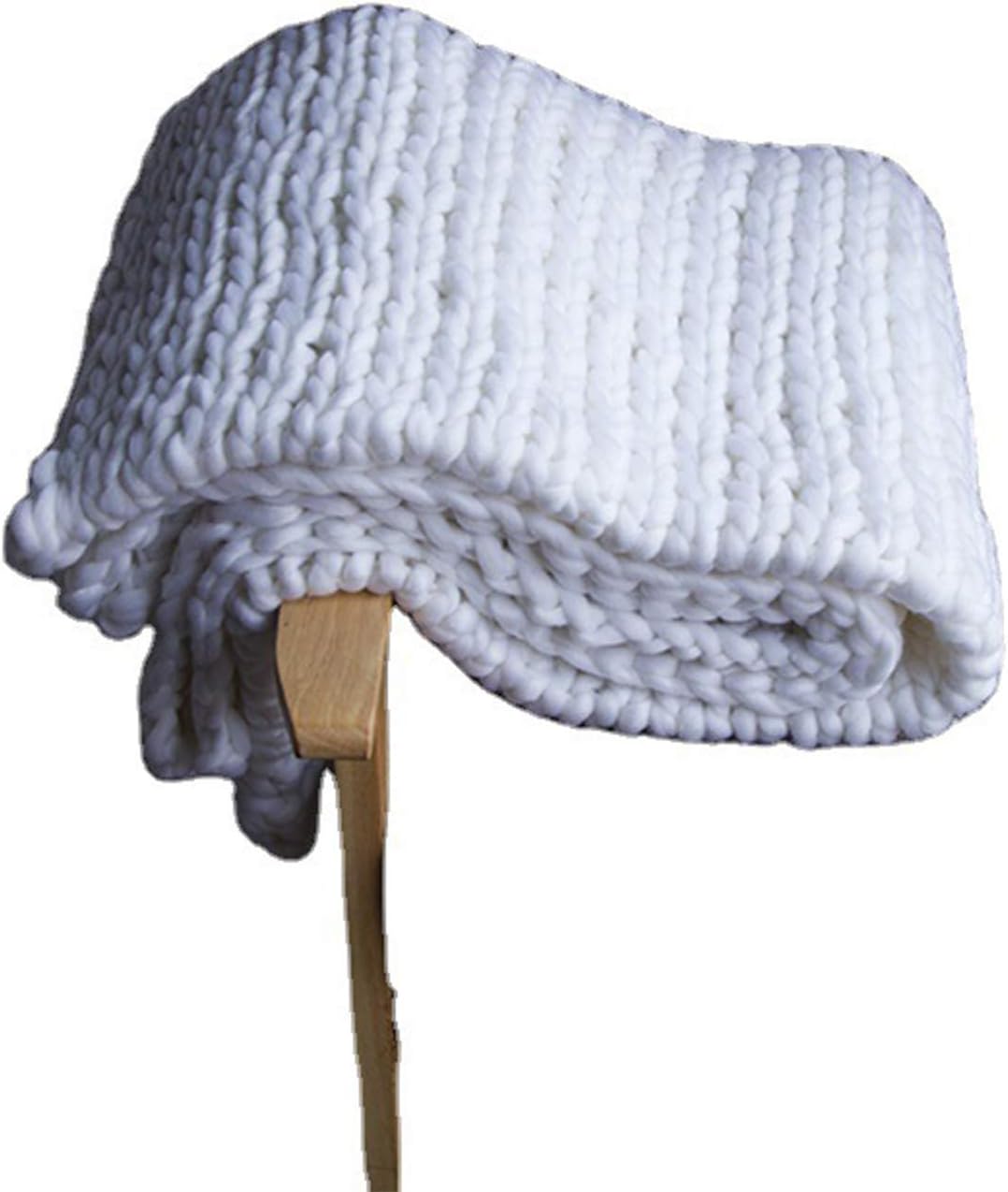 ◑ Handmade Chunky Knit Blanket Large Thick Wool Bulky Knitting Throw for Bedroom Decor Pet Bed Chair Mat Rug