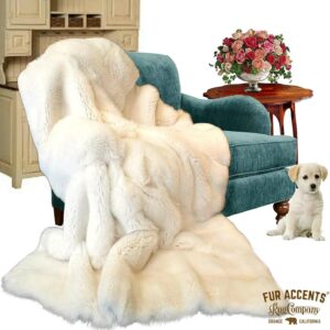 Fur Accents Faux Fur, Bunny Rabbit Throw Blanket with Velvety Soft Minky Cuddle Lining, Bedspread, Throw, Comforter, Hand Made to Order USA (King Size, Pink)