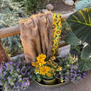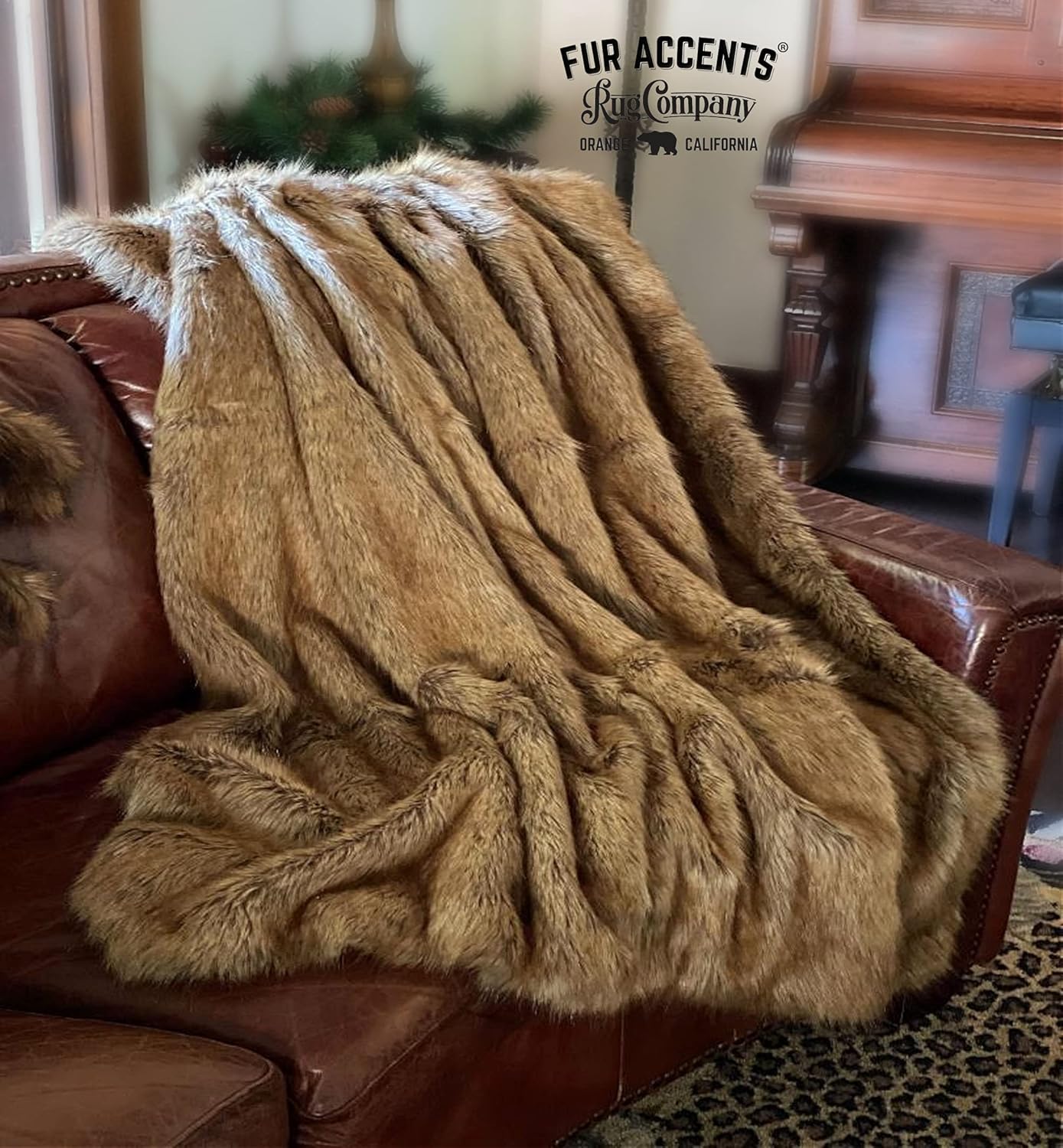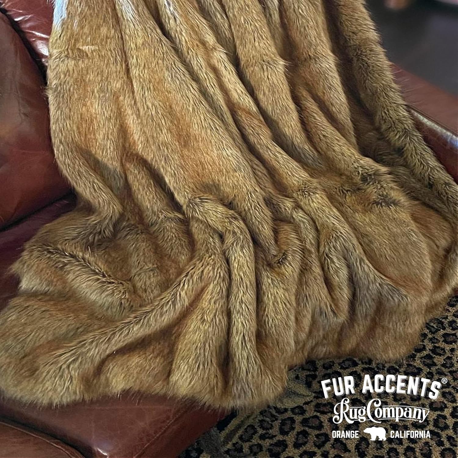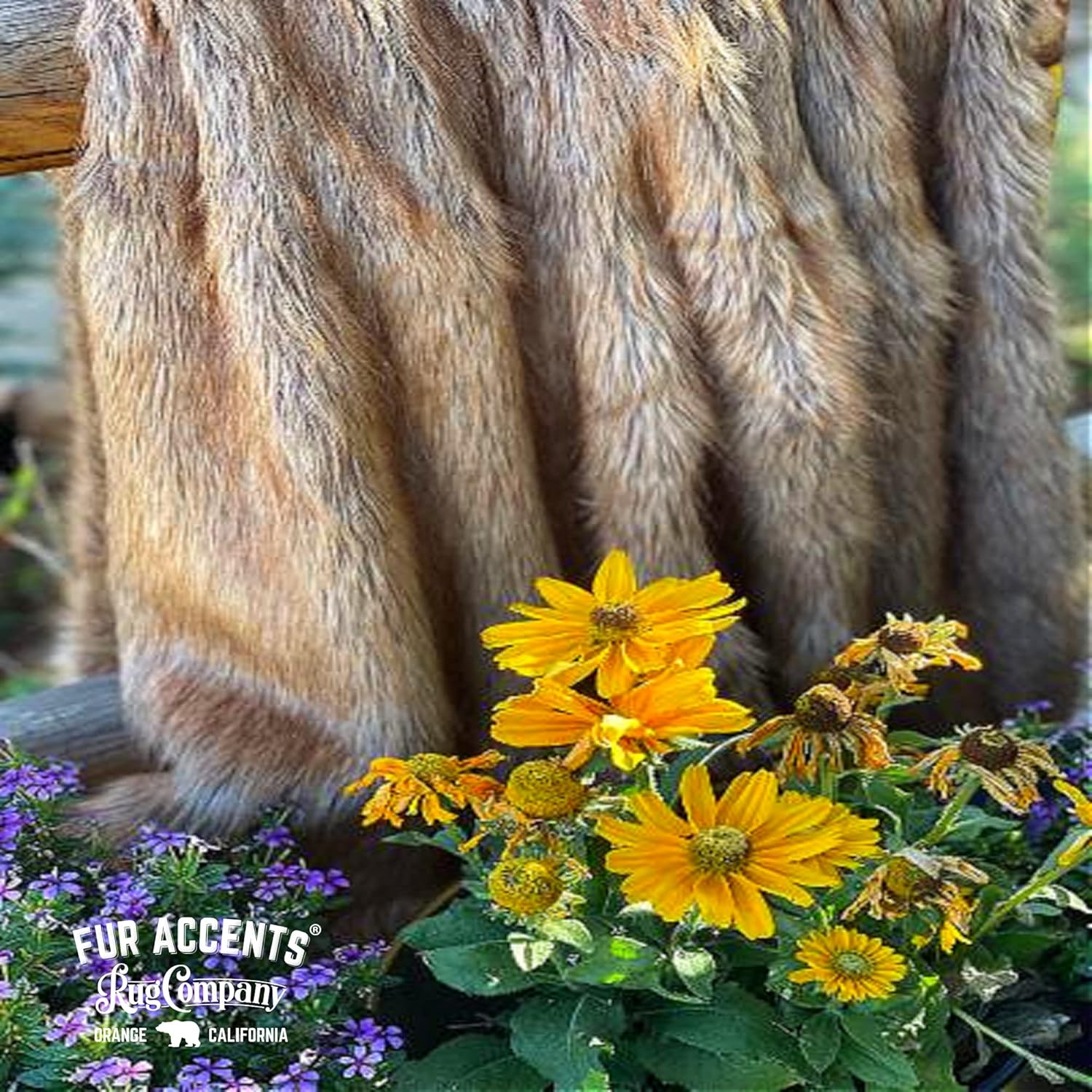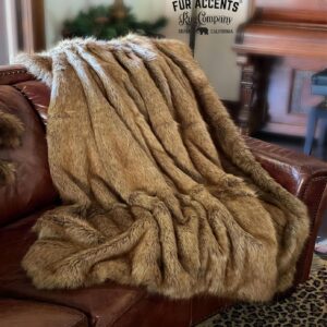 Fur Accents Hand Crafted Throw, Shag Faux Fur, Light Tan Wolf, Coyote Throw Blanket with Sunflower Minky Cuddle Lining, Throw, Comforter, Plush, Hand Made USA (4’x5′ Throw)