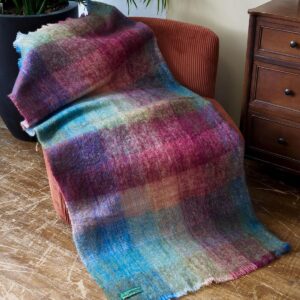 Genuine Irish Angora Mohair Wool Throw Blanket 72″x54″ Inches Plaid Multicolor i##e##s: Super Soft Feel ^^ Warmth ^^ Traditional Celtic Style ^^ Imported from Ireland :i##e##s