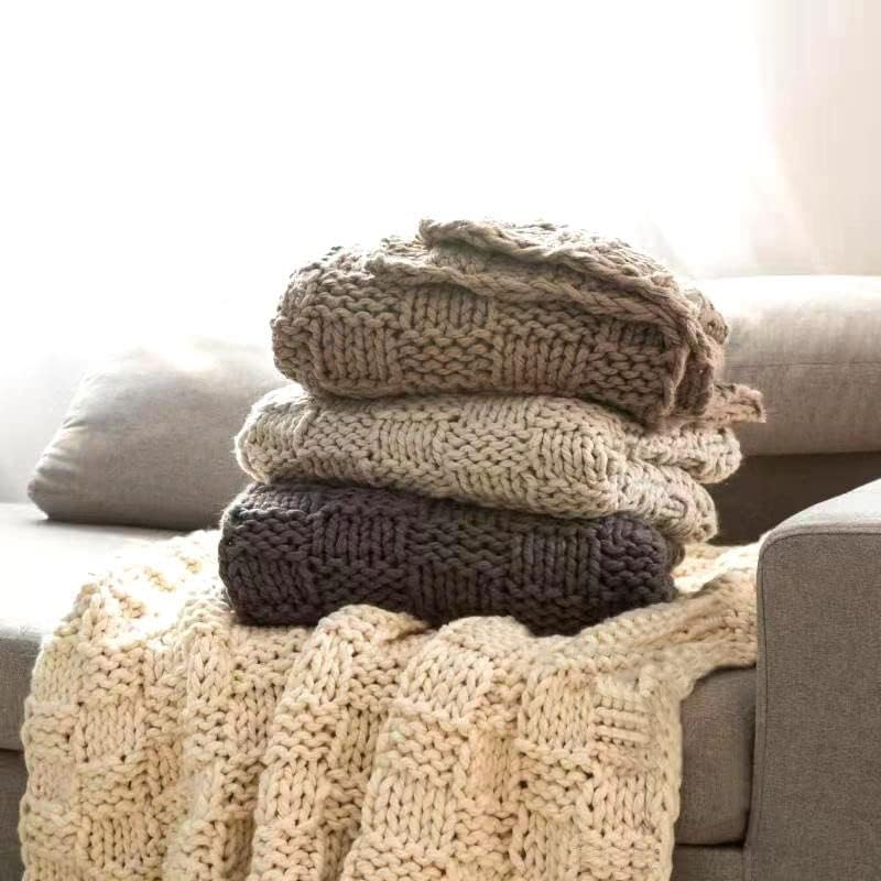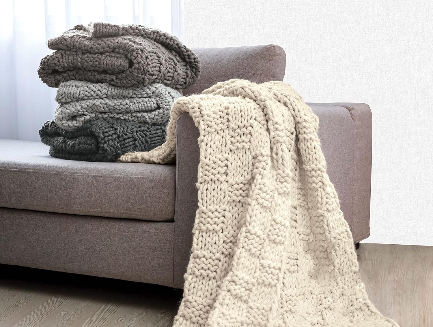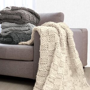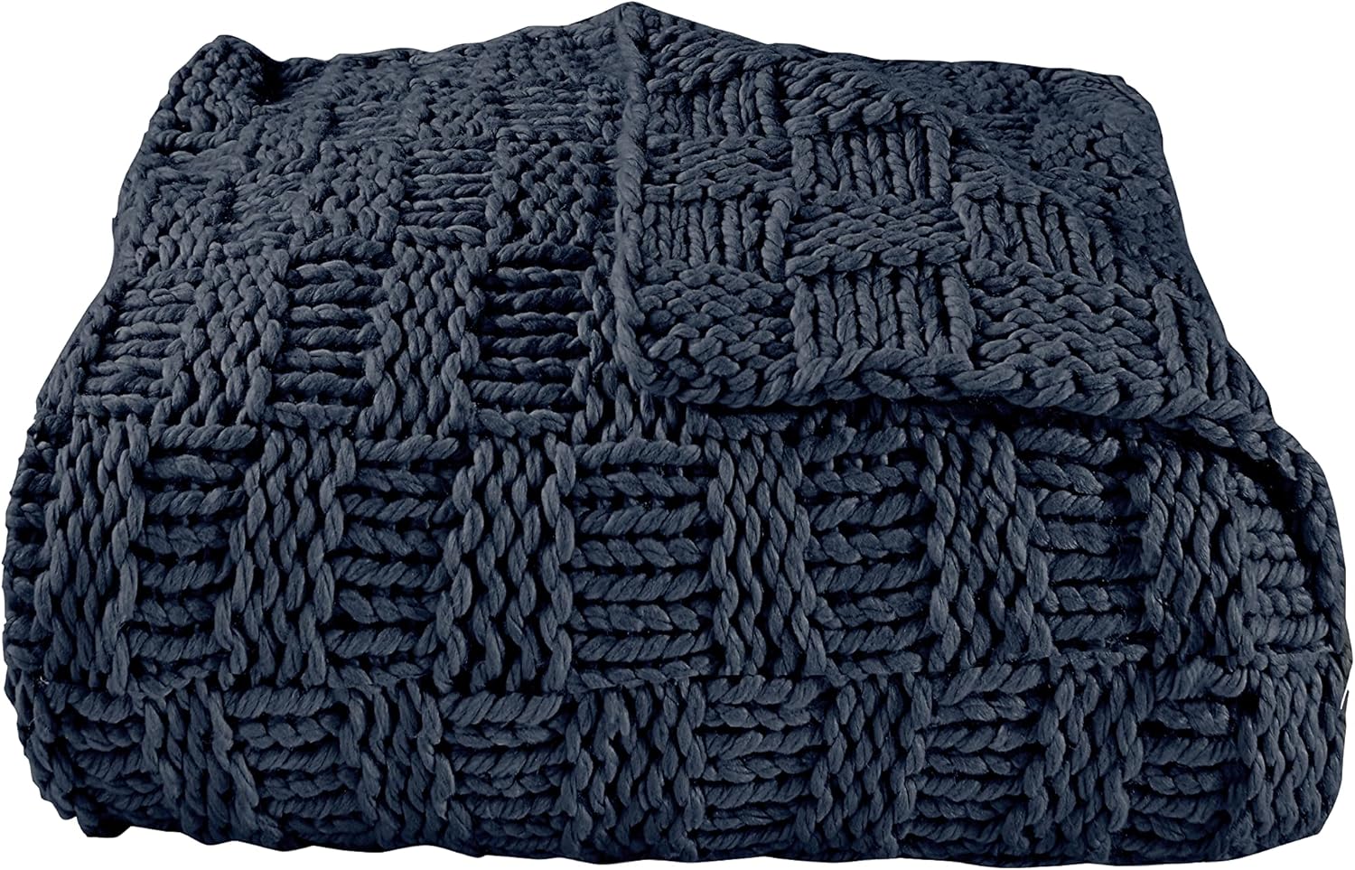 HiEnd Accents Chess Knit Throw, 50×60 inch, Navy Solid Color, Modern Farmhouse Rustic Style Soft Cozy Warm Luxury Blanket