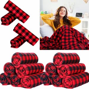 Moukeren 48 Pcs Buffalo Plaid Throw Blanket Bulk, 59 x 47 Inch Fleece Bed Throw Winter Warm Lightweight Blankets Soft Plush Plaid Blanket Bulk for Bed Couch Sofa Office or Homeless Gifts (Red,Black)