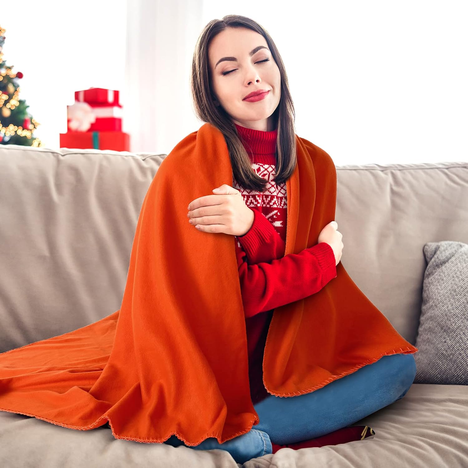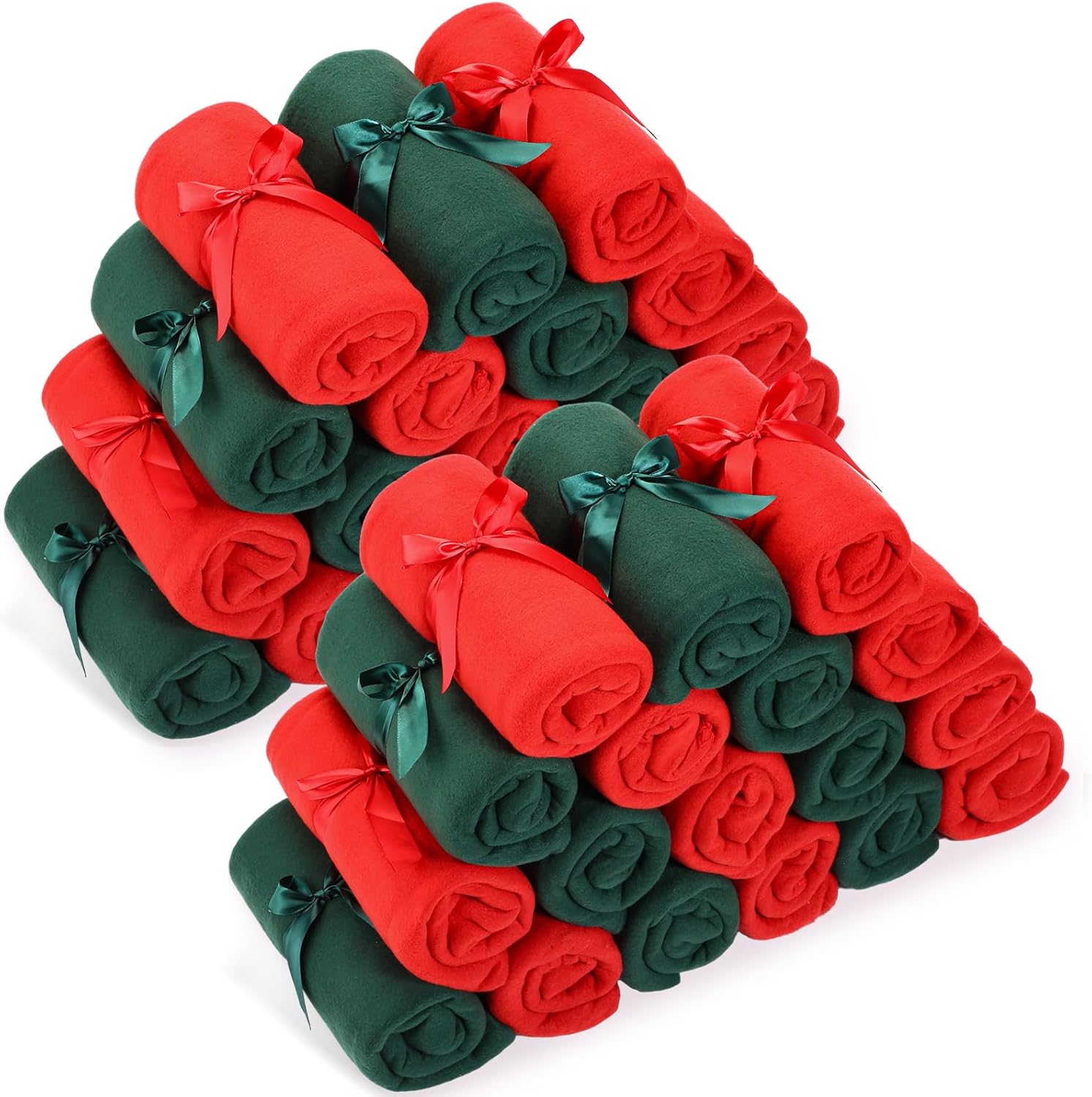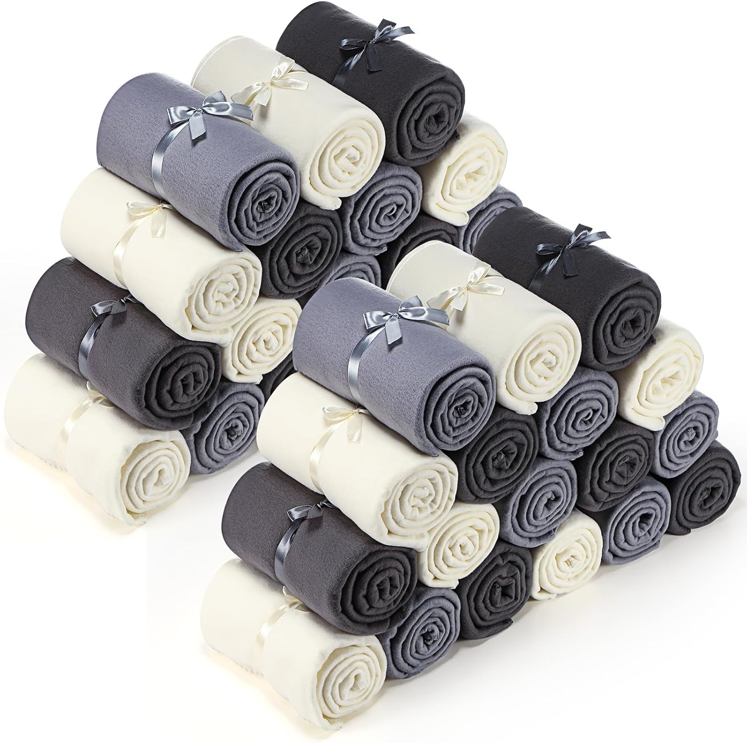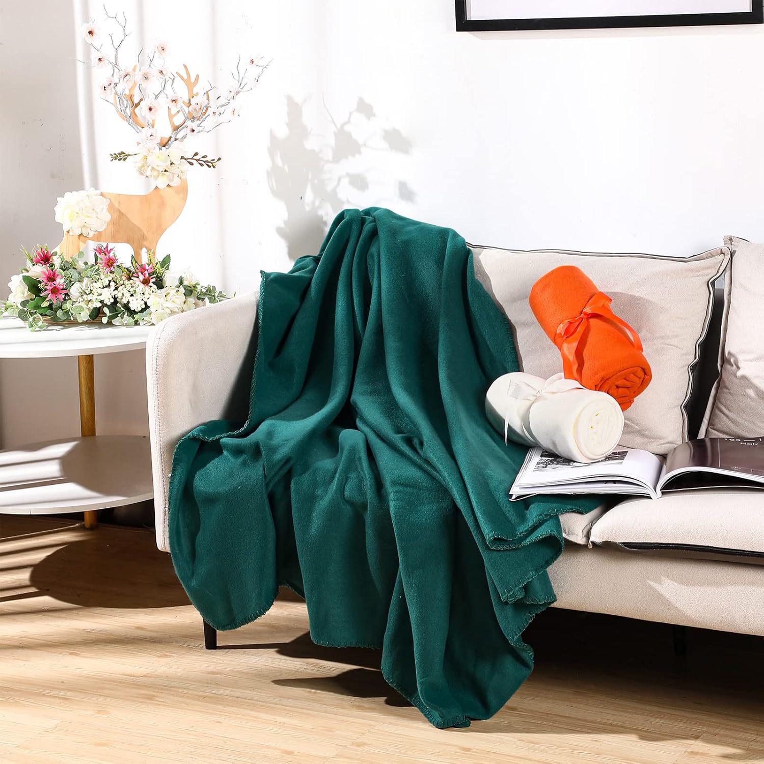 Oudain 36 Pcs Fleece Throw Blanket Bulk Soft Lightweight Fleece Blanket Warm Comfortable Blankets for Bed Couch Sofa Home Office 50 x 60 Inch(Green, Orange, Beige)