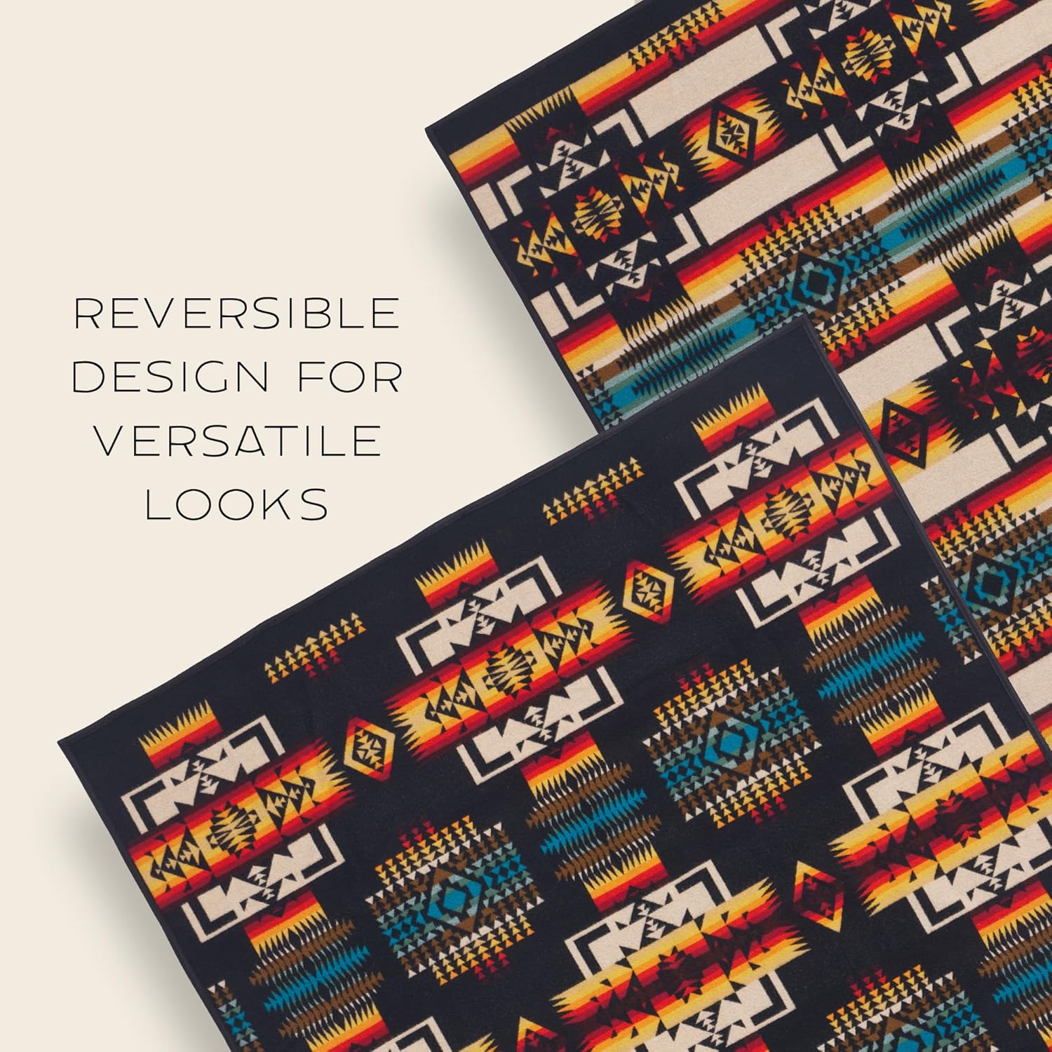 Pendleton Chief Joseph Jacquard Wool Blanket 64″ x 80″, Reversible Throw Blanket, Wool Felt Binding, Breathable, Napped for Softness, Great for Home and Travel