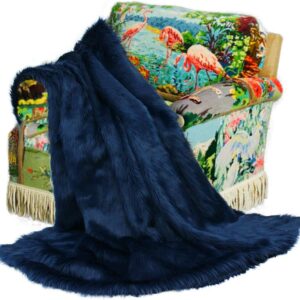 Introducing One of Our Most Brilliant New Colors! Navy Blue Throw Blanket – Premium Quality Faux Fur – Plush Designer Throw Blankets and Luxurious Fur Bedding – Exclusive Home Decor and Fashion. Each Piece is Individually Hand-Made in the USA – Hand Cut and Sewn – Made to Order. 100% Animal Free.r – Exclusive Designer Quality and Workmanship. Don’t be Fooled by Cheap Imports and Imitation. Authentic “Fur Accents” Throws Are The Mindful Alternative. Premium Shag Faux Fur Throw Blanket – Bedspread One of Our Top Selling and Most Beautiful Alternative Fur Throw Blankets, Shown in Navy Blue, Also Available in : Rich Burgundy Wine, Bordeaux, Turquoise, Orange. Latte, Tan, Camel, Bubble Gun Pink, Caramel, Olive Green, Purple, Lime Green, Royal Blue, Cobalt Blue, Navy Blue, Red, White, Ivory Off White, Black, Chocolate Brown, Pewter, Ivory Off White, Hot Cherry Pink, and More Fits Perfectly into Traditional or Contemporary Designs. Warm and Comfortable Without Being Too Thick or Heavy. Fold it, Roll it, Drape or Wear it! Adorn a Comfy, Overstuffed Chair, Drape Over the Back or the Arm of Your Favorite Sitting Room Sofa Roll and Stuff it Into a Large Rustic Wicker Basket and Place on the Hearth Next to the Fireplace for the Next Time you are Watching Your Favorite Netflix Move and Feel a Chill. This Blanket is a Very Popular Gift at Christmas Time and All Year Round. Exotic, Romantic and Luxurious. We Can Definitely See Why So Many People Love It. Why Not Get Two or Order a Bigger Size and Share the Fun and the Warmth. This Throw is Lined With the Worlds Soft Minky Cuddle Fur Lining EASY CARE: We Recommend Professional Care – Spot Clean – Can be Washed – Cold Wash – Air Dry Flat – Use No Heat – 30 COLORS: So Many Rich and Wonderful New Colors Available. we will make a Pillow, a Bedspread, Comforter or Throw Just For You! SIZE: 3 Sizes Shown, However, We Make Every Size up to King Size
