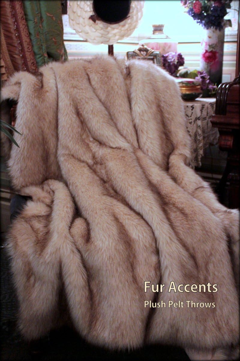 Quality Faux Fur Accent Pelt Throw Blanket/ approx 60″ x 70″ / BROWN TIP ARCTIC FOX FAUX FUR / Accent Rug/ Custom Designed and Hand made Locally / Available in several sizes, shapes and colors