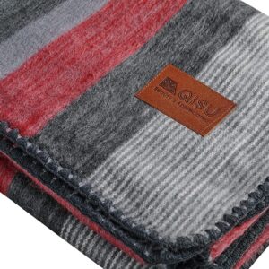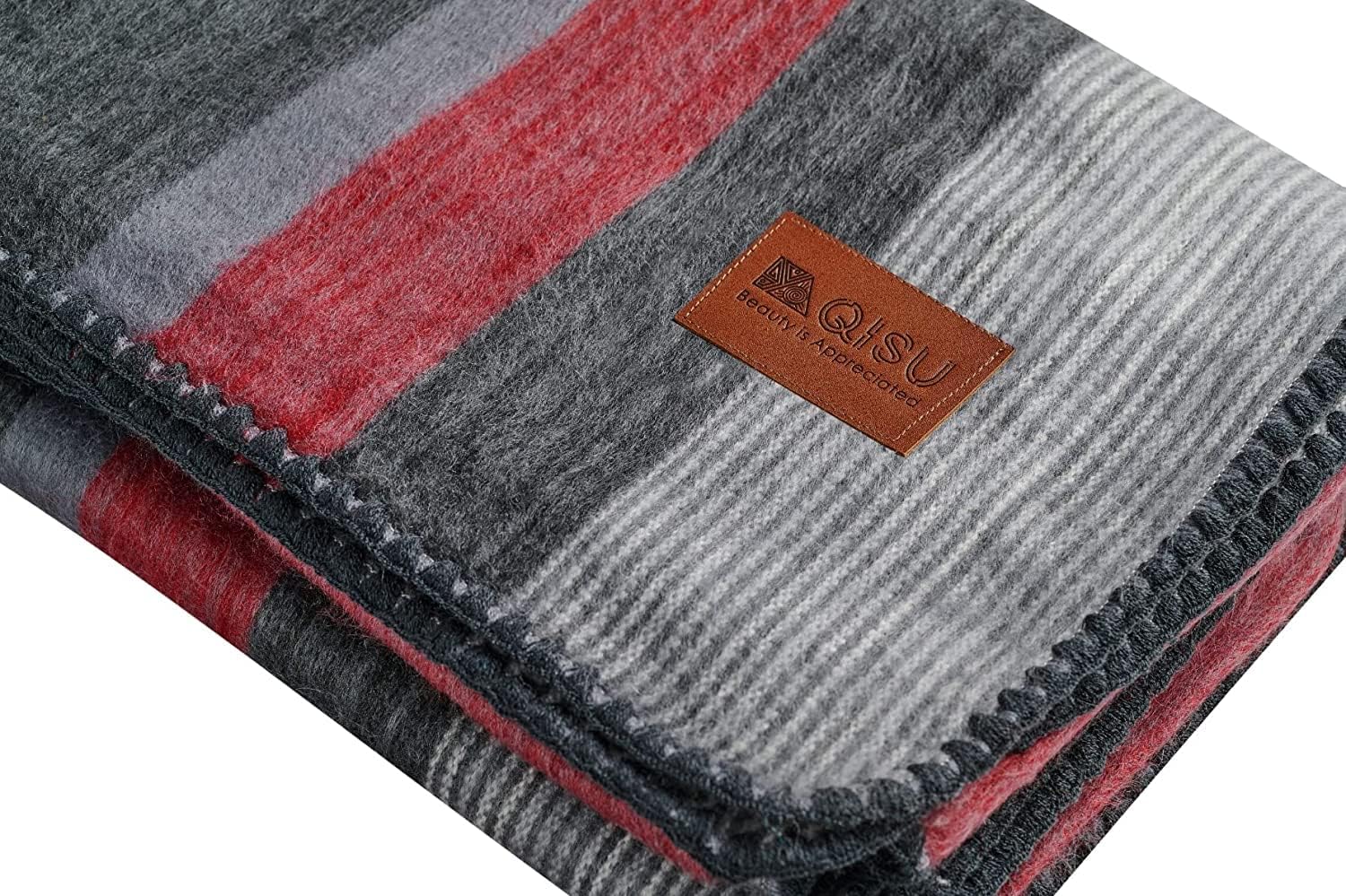 Qisu Alpaca Wool Blanket Throw | Queen, Beautiful, Warm, Stripes | 85 x 65 inches | Ultra-Soft, Hypoallergenic and Breathable | Non-Itchy or Scratchy Fabric (Red Grey Stripe)
