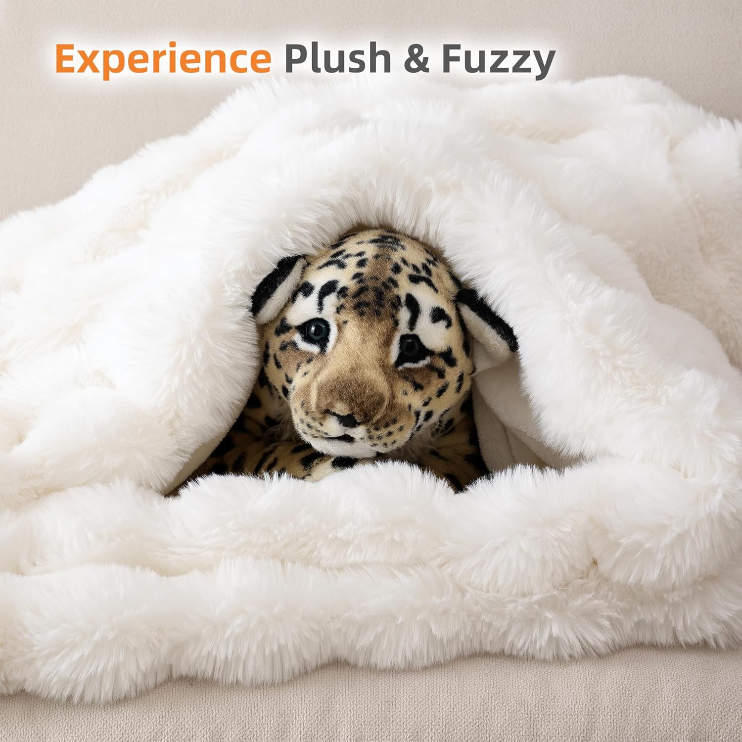Smoofy Faux Fur Throw Blanket for Couch \u2013 Cream White Fluffy Cozy Rabbit Fleece, Plush Soft Bubble Blanket for Sofa & Bed, for Mom, Warm Fuzzy Home Room Decor Throw 50″ x 60″