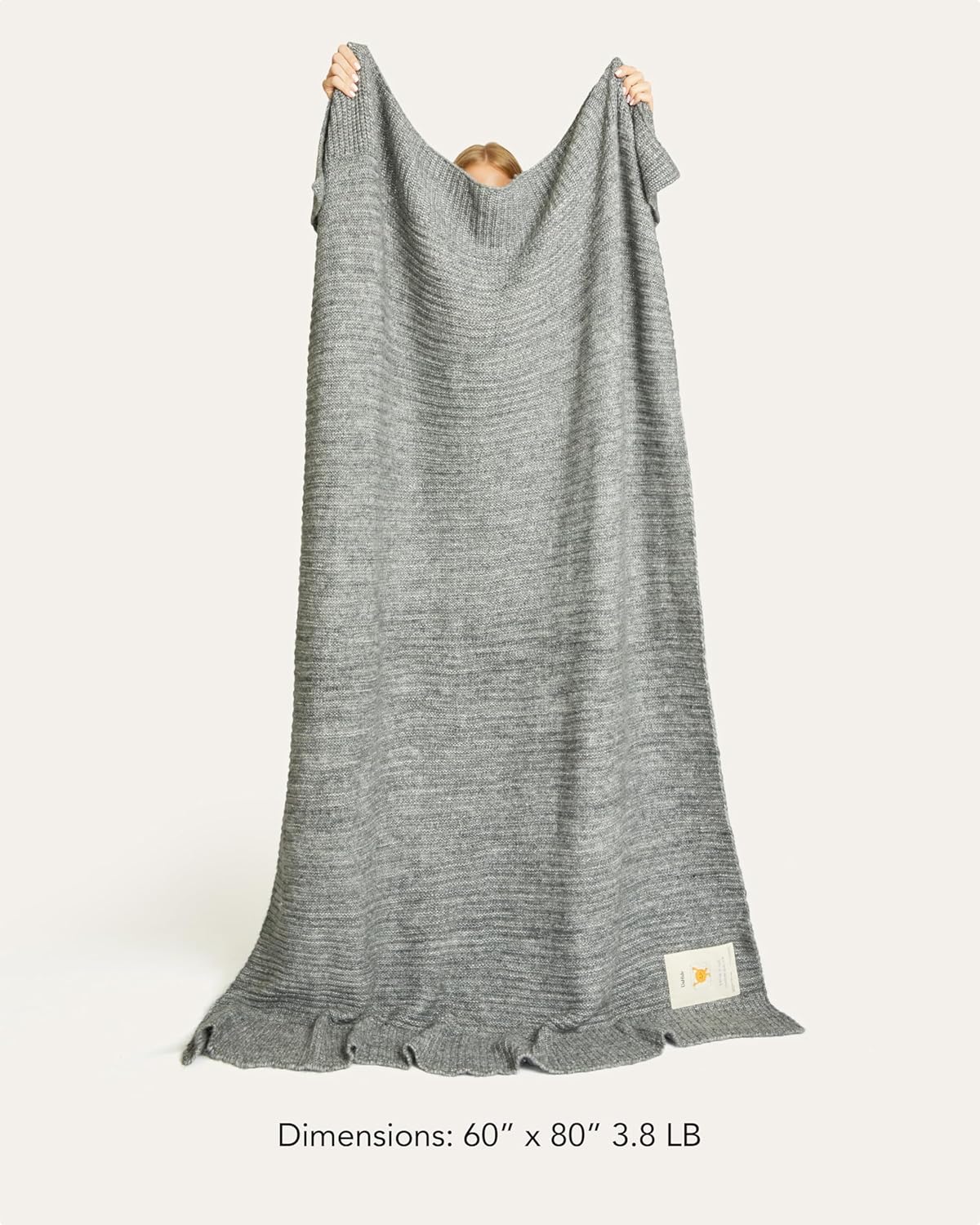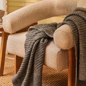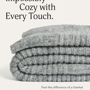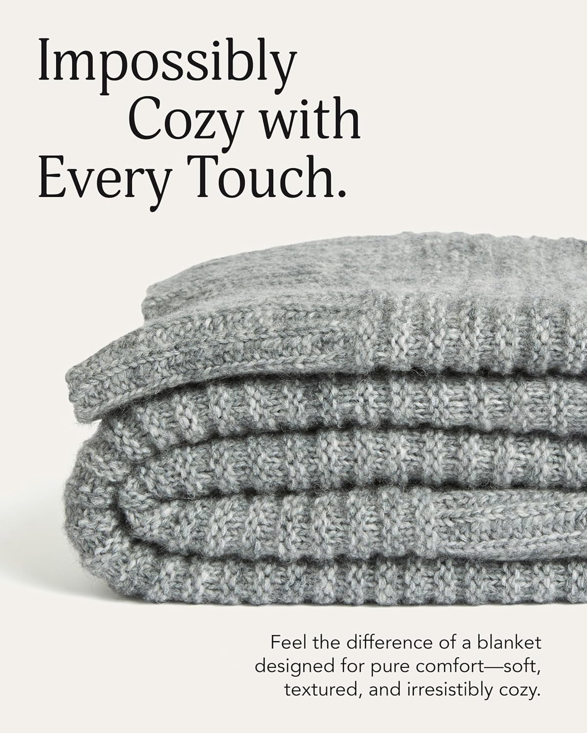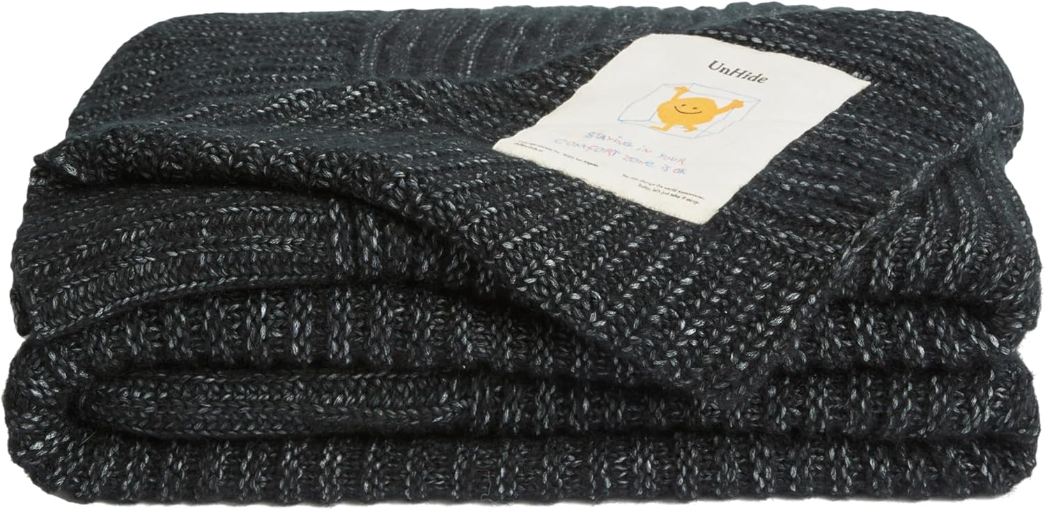 UnHide Melange Knit Blanket – 60″ x 80″ Textured & Ultra-Soft Wool Throw – Timeless & Breathable Knitted Blanket for Bedroom & Living Room – Silver Fox