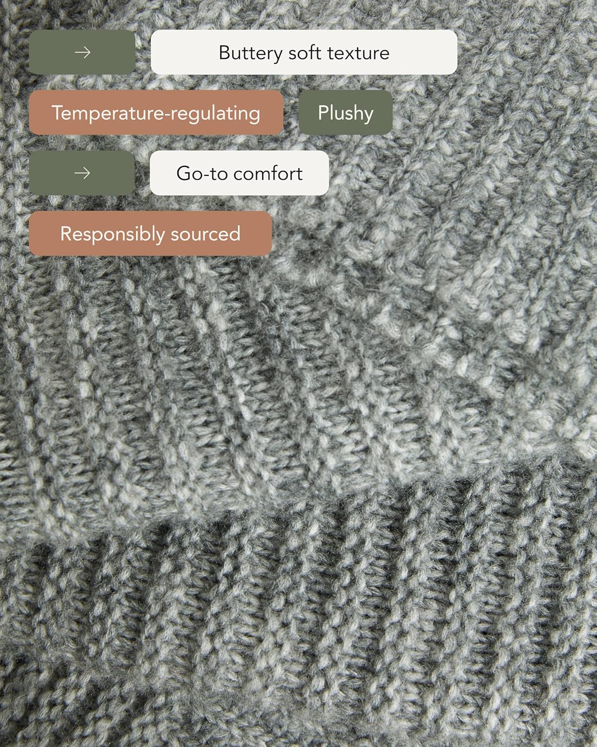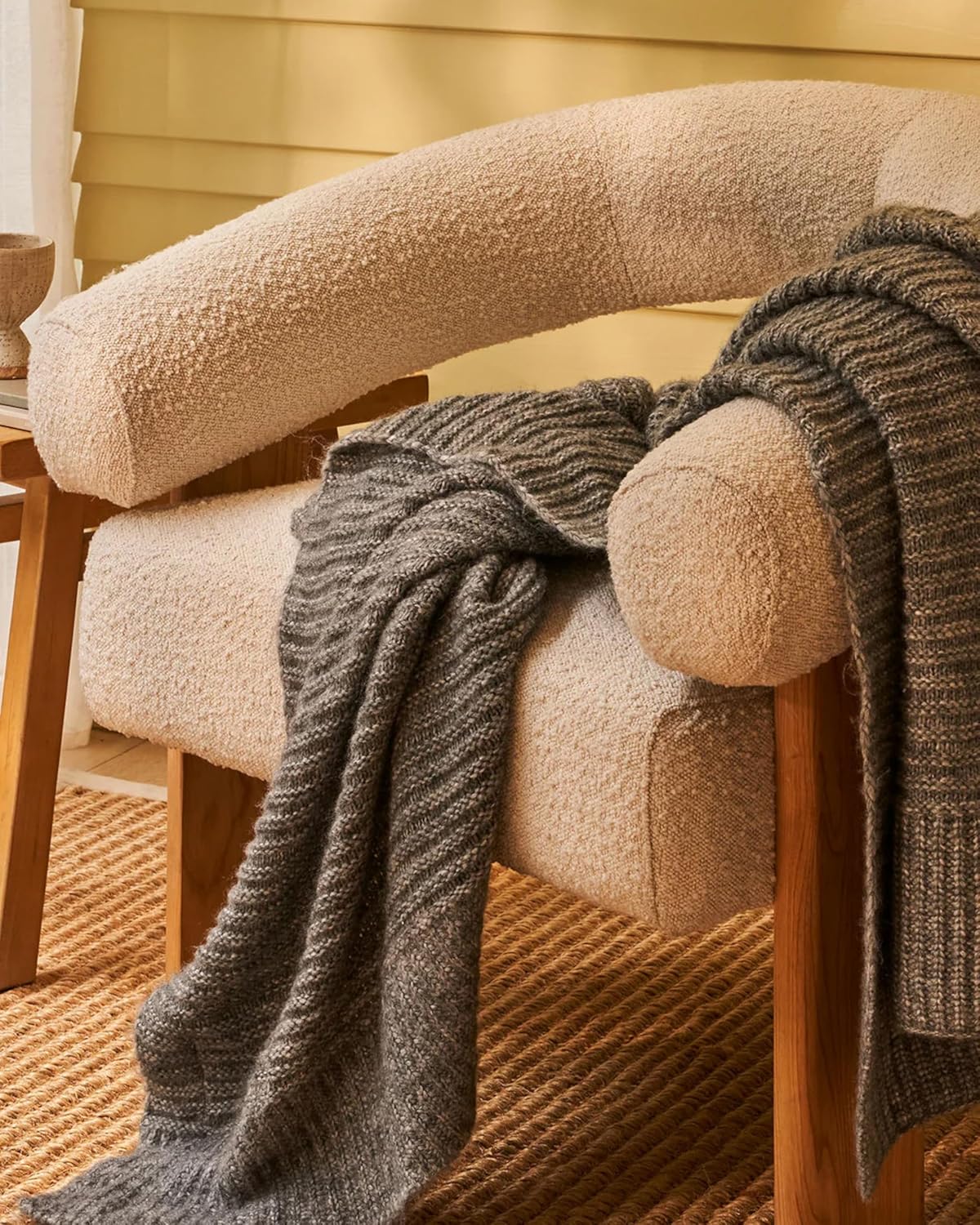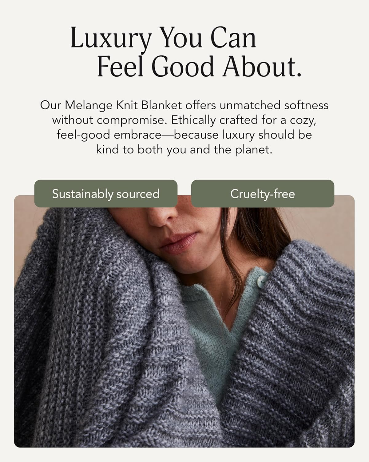 UnHide Melange Knit Blanket – 60″ x 80″ Textured & Ultra-Soft Wool Throw – Timeless & Breathable Knitted Blanket for Bedroom & Living Room – Silver Fox